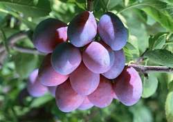 Слива Венгерка Московская. Дерево среднерослое, с округло-шаровидной, раскидистой, довольно густой кроной. Листья средней величины, удлиненные, зеленые. Плодоношение на однолетнем приросте и на букетных веточках.