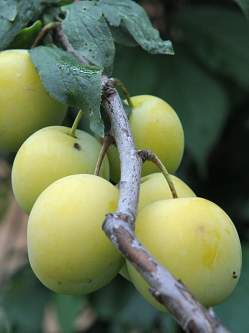Урожай ежегодный, собирается в конце августа. С дерева снимается 45-50 килограмм вкусных плодов. В момент созревания плоды принимают ярко-золотистую окраску с крапчатым румянцем. Кожица тонкая. Вес плодов 25-35 грамм. Форма округло-вытянутая. Мякоть золотистая, сочная, сладкого десертного слегка кисловатого вкуса. Дерево этого сорта вырастает мощным, достигает 5,5 метров в высоту. Крона аккуратная, округлая, среднезагущенная. Прививка к низкорослым сортам позволяет снизить рост дерева.