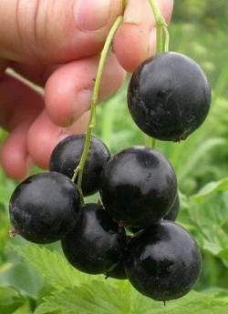 Ягоды очень крупные, округлые, черные, блестящие, средней плотности, кисло-сладкого вкуса, универсального назначения.