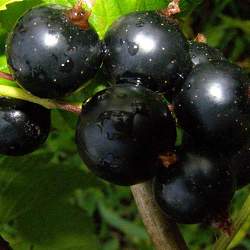 Смородина черная Петербурженка. Куст высокий, довольно компактный, средне загущенный. Растущие побеги средней толщины, зеленые, неопушенные. Кисти средней длины (5,5 см), средней плотности, с 6-11 ягодами. Ягоды крупные (1,2-1,5 г), округлые и овальные, черные, слегка опушенные, со средним блеском, гладкие или редко с перетяжкой у отдельных ягод, отрыв сухой. Вкус ягод сладкий со слабой кислинкой. Содержание витамина С составляет 207 мг. Дегустационная оценка 4,5 балла.