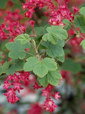 Смородина King Edward VII (Кинг Эдвард VII). Декоративный кустарник с ароматными молодыми побегами и листьями. Причем ценится, в первую очередь, за свое роскошное цветение, которое можно наблюдать в течение почти всего мая. Высота смородины составляет обычно 2 м. Однако в регионах с суровыми климатическими условиями кустарник не вырастает выше 1 м.