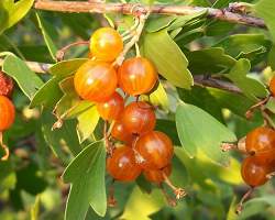 Ягоды средней массой 1 г, округлой формы, желтой окраски. Плодоножка короткая, зеленая, тонкая. В ягодах содержится: сахара 13,9%, кислоты 0,8%, витамина С 23,2 мг%, каротина 9,1 мг%. Вкус ягод кисло-сладкий, нежный, освежающий. Дегустационная оценка 4,3 балла.