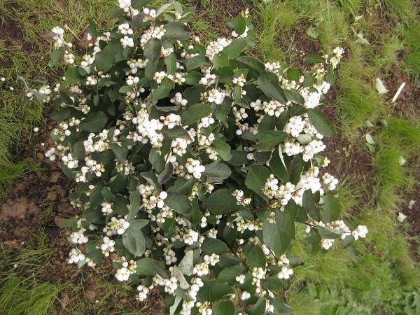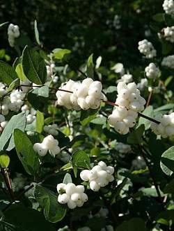 Снежноягодник White Hedge (Вайт Хедж). Вырастает прямо растущим кустиком около 1,5 м в высоту с пышной кроной. Листики яйцевидной, округлой формы и имеют насыщено-зеленый окрас сверху, а снизу сизо-голубой. Цветет небольшими, розово-белыми цветочками, которые собраны в кистевидные, пышные соцветия. По-настоящему прекрасным кустарник становится во время созревания несъедобных плодов — больших, круглых ягод, без единого пятнышка, чисто-белого цвета с молочным отливом. Ягоды собраны в плотный пучок и долго не опадают.