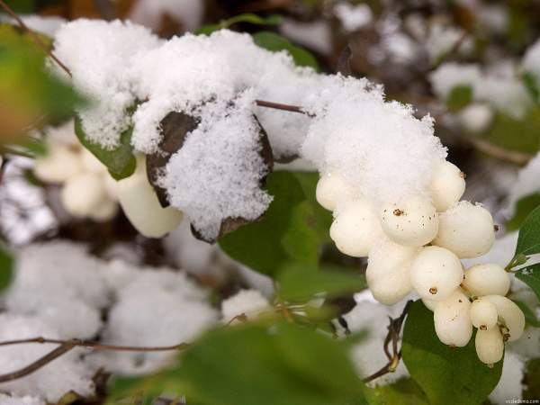 Снежноягодник White Hedge (Вайт Хэйдж). Вырастает до 1,5 м в высоту. Листья темно-зеленые, эллиптические и овальные по форме. В июне-июле обильно цветет белыми цветками, вслед за которыми осенью появляются белые декоративные плоды.