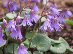 Сольданелла горная. Растет в разреженных хвойных и сырых лесах, среди кустарников, на лесных лугах субальпийского пояса гор Средней Европы. Растение до 20 см высотой с розеткой округлых, городчатых, длинночерешковых листьев шириной от 2,5 до 5 см. Верхняя сторона листа блестящая, темно-зеленая, нижняя красноватая с фиолетовым оттенком.
