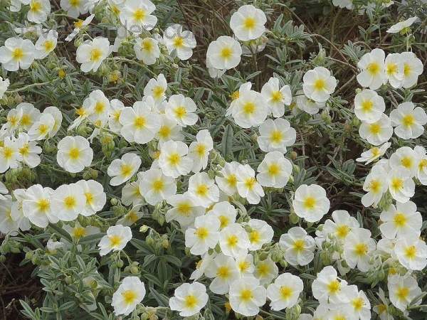 Солнцецвет The Bride (Зе Брайд). Гибридный сорт. Характеризуется мощным обильным цветением. Компактный куст со свисающими побегами в мае-июне покрывается белыми кистями, состоящими из крупных цветков. Светолюбив. Достаточно зимостоек.