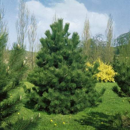 Сосна черная — это красивое быстрорастущее хвойное вечнозеленое дерево. Природный ареал произрастания — горные районы южной Европы. Благодаря высокой зимостойкости используется в ландшафтном дизайне северных районов. Хвоя темно-зеленая, длинная 10-12 см. Крепкий ствол и мощные ветви способны выдержать обильные снегопады, а также противостоять самым сильным ветрам. Густая крона в молодом возрасте яйцевидная, а позже — зонтиковидная раскидистая, создает отличную тень для мест отдыха.