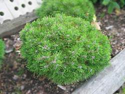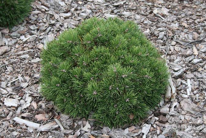 Сосна Grune Welle (Грюнe Велле). Карликовый кустарник с плотной шаровидной кроной. После 10 лет высота 0,6-0,7 м, диаметр 0,8-0,9 м. Годовой прирост 4-6 см. Предпочитает солнечные места. К почве не требовательна, растет на любых хорошо дренированных почвах, от кислых до щелочных.