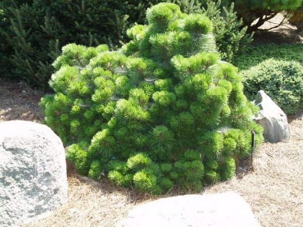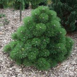 Сосна чёрная Helga (Хельга). Очень пушистый сорт черной сосны. Хвоя длинная, прямая, интенсивно зелёная, расположена радиально, красиво контрастирует с кремово-белыми весенними приростами. Дерево карликовое, к десяти годам высота всего 100 см. Растет медленно. Форма широкопирамидальная. Шишки мелкие, желтовато-коричневые. Кора темная.
