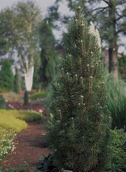 Сосна черная Komet (Комет). Лучший пирамидальный сорт сосны чёрной, побеги короткие, стройные, растущие круто вверх, к 10-ти годам приобретает красивую колонновидную форму, высота 150 см, ширина 30-50 см, хвоя тёмно-зелёная, место солнечное, подходит для японских и вересковых садов.