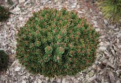 Сосна горная Kostelnicek (Костелничек). Великолепный, суперкарликовый чешский сорт. Отличается очень плотной широкой сплющенно-сферической кроной. Годовой прирост составляет 1,5 см. Побеги прямостоячие, с густой, плотной, короткой, темно-зеленой хвоей, иглы собраны в пучки по две.