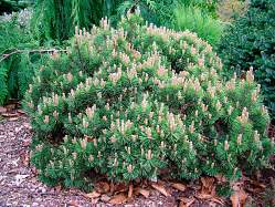 Сосна Mops Midget (Мопс Миджет). Невысокий шаровидный сорт горной сосны. Растет по 5-7 см. в год. Достигает 40-70 см. Ветви густые, жесткие, растут вверх или в стороны, за счет чего получается плотная форма куста. Игла насыщенного зеленого цвета, средней длинны.