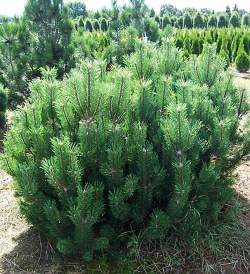 Сосна горная Мугус в природе распространена от Восточных Альп до Балкан. Кустарниковая медленнорастущая форма сосны горной. Крона распростертая, стелющаяся, достигает во взрослом состоянии высоты 2-3 м и диаметра 3-4 м. Короткие побеги направлены вверх. Ежегодный прирост составляет 10 см в высоту и 12 см в ширину. Темно-зеленая хвоя (около 4 см) собрана по две, жесткая, игольчатая, иногда перекрученная.