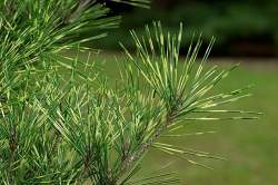 Сосна густоцветковая Oculus-draconis (Окулус-драконис). Дерево неправильной формы, растёт неравномерно, особенно в ширину. В молодом возрасте растёт быстро, после 10-ти лет высота 200-300 см. Хвоя длиной 8-12 см, очень нежная, зелёная с двумя кремово-жёлтыми поперечными полосками, так называемые «Глаза дракона» (если смотреть сверху, то видны чередующиеся зелёные и кремово-жёлтые кольца).