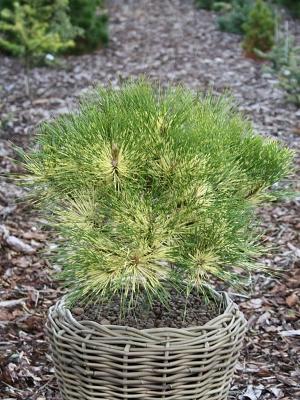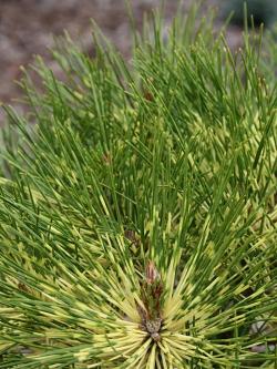 Сосна Rainbow (Рейнбоу). Сорт сосны с умеренным ростом. Характерной особенностью являются ярко-желтые боковые изменения цвета на длинных зеленых иголках. Иглы собраны по 2 в кучу. Через 10 лет вырастает примерно до 2 метров в высоту, через много лет примерно до 3 метров в высоту.