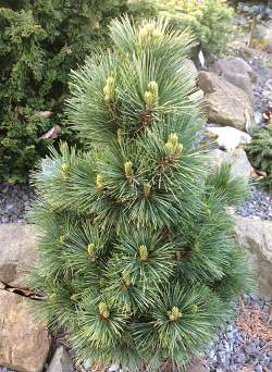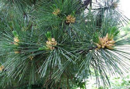 Сосна румелийская (балканская). Красивое неприхотливое хвойное дерево. Крона плотная пирамидальная. Густая вплоть до земли. Растет медленно. Хвоя длинная (10 см), тонкая, в пучках по 5 шт. Шишки светло-коричневые.