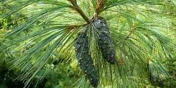 Цветет в апреле. Зрелые шишки конечные, одиночные или по 3-5 вместе, крупные, 7,5-9 см длиной, 3,5-5 см шириной, почти сидячие. Они прямостоящие или слегка согнутые, в основном симметричные, светло-коричневые, яйцевидно-овальные.