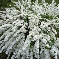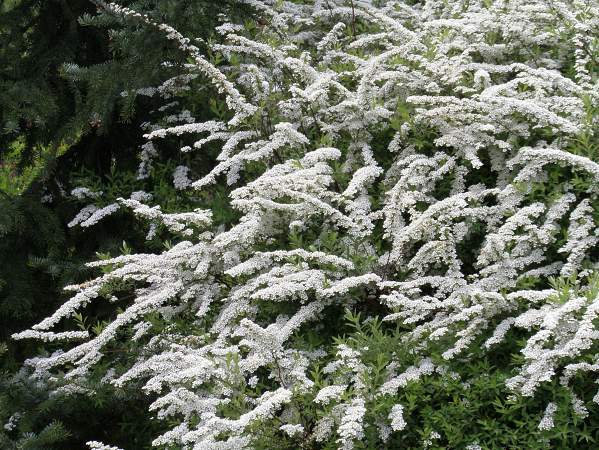 Спирея аргута. Часто называют "пеной мая", что определяет характер и обилие цветения. Высота и диаметр кроны 1,5-2 м. Ежегодный прирост в высоту и ширину 15-20 см. Долговечность 50 лет.