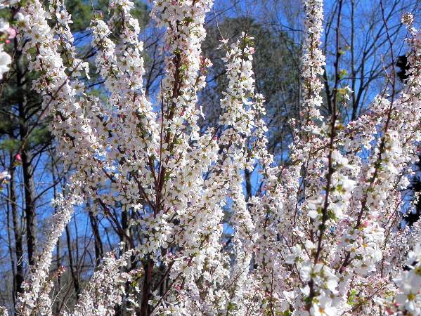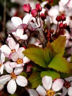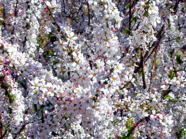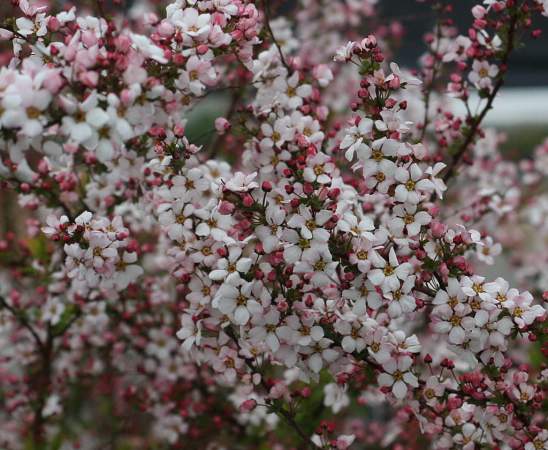 Спирея Тунберга Fujino Pink (Фуджино Пинк). Обильно цветущий, первый по времени цветения кустарник. Невысокий многоствольный кустарник, достигающий в природе высоты 1,5 м. Ветви расположены неравномерно, изящно выгнуты. У него очень узкие, линейно-ланцетные листья до 4 см длиной, зеленые летом и оранжевые осенью.