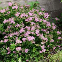 Спирея Nana (Нана). Карликовый компактный кустарник высотой 40-50 см и кроной до 80 см в диаметре. Молодые побеги войлочно-опущены, затем становятся голыми. Обильно цветет с июля по сентябрь розово-красными щитковидными соцветиями. Листья продолговатые, яйцевидные, темно-зеленые, с обратной стороны сизоватые, при распускании с красноватым оттенком, осенью оранжевые.