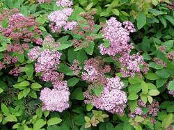 Спирея японская Odensala (Оденсала). Компактный плотный кустарник, высотой до 1 м и столько же в диаметре. Листья темно-зеленые, эллиптические, заостренные, зубчатые по краям, окрашиваются осенью в желто-красный цвет. Цветки розовые, мелкие, около 5 мм, собранные в соцветия на концах побегов текущего года.