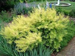 Спирея Тунберга Ogon (Огон). Очень декоративный густоветвящийся кустарник высотой и диаметром 90-120 см. Листья узкие, изящные, длиной 4 см, напоминают листья ивы. Окраска листвы весной золотисто-жёлтая, летом — ярко-зелёная и очень эффектная оранжевые осенью.
