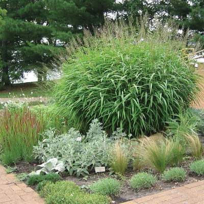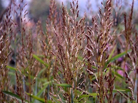 Сподиопогон сибирский. Декоративный злак, образует аккуратную закруглённую кочку. Весной отрастает поздно. Листья плоские, шириной 1,5 см, расположены почти горизонтально, ярко-зелёные, осенью краснеют (на солнечном месте). Цветоносы высотой 100-120 см. Метелки колосьев, появляющиеся в середине лета, украшают растение до октября.