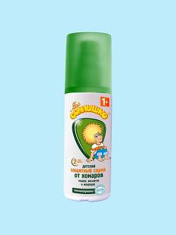 Спрей от комаров Мое солнышко. Разработан специально для детей. Эффективно защищает от комаров, слепней и других летающих насекомых (москитов, мокрецов, мошек, а также мух и ос). Безопасный для ребенка состав подходит для малышей от 1 года. Не оставляет жирных следов на одежде, обладает мягким приятным запахом.