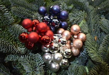 Глянцевые и матовые шарики (синие). Станут прекрасным дополнением к новогоднему декору — для украшения венков и гирлянд, композиций из лапника.