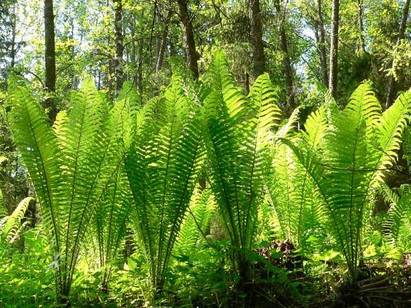 Страусник обыкновенный. Неприхотливый папоротник, легко разрастается в тенистых влажных местах. Форма очень красивая, вазообразная. Подойдет для мест, где необходимо имитировать натуральные заросли.