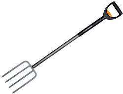 За счёт дополнительного рычага в нижней части вил, вы сокращаете усилие при работе и предотвращаете усталость и нагрузку на спину и плечи. 4 острых зубца особенно хорошо подходят для твердой и каменистой почвы.
