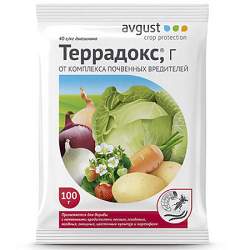 Террадокс (100 г). Универсальный препарат от комплекса почвенных вредителей.Применяется для защиты овощных, плодовых, ягодных, цветочных, лесных культур и картофеля. Имеет усовершенствованную гранулированную форму. Создает надежную длительную защиту вокруг растений. Обладает высокой скоростью воздействия. Не токсичен для культур в рекомендуемых нормах.