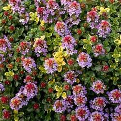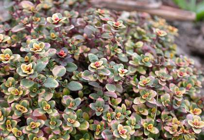 Тимьян лимоннопахнущий Doone Valley (Дуни Вэлли) — растение с мелкими округлыми желто-зелеными листочками, пахнущими лимоном. Кустики источают свой аромат при прикосновении к ним. Цветки нежные, светло-розовые.