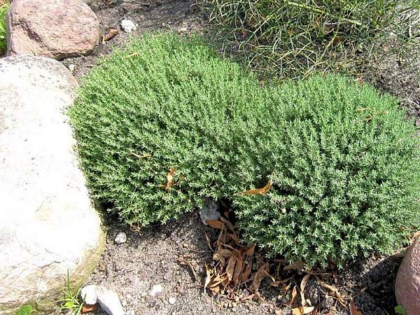 Для создания ковровой посадки тимьяны высаживают через 20 см, используя молодые черенкованные сортовые растения. В этом случае возможно в течение сезона добиться ровной поверхности с мелкой фактурой и однородной окраской. Отлично выглядят куртины тимьяна, высаженные между плитами мощения, так, чтобы можно было наступать между кустиками при прогулке и наслаждаться ароматами потревоженных растений.