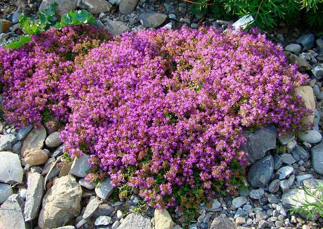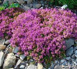 Тимьян Hall Var. Rosa (Халл Вар. Роза). Многолетнее растение достигающее высоты 5-10 см. Листья зелёные, мелкие, душистые, с нижней стороны опушенные. Цветки розовые, ароматные. Медленно растущий кустарничек.