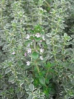 Тимьян лимоннопахнущий Buntblattrig (Банблаттриг). Многолетнее растение достигающее высоты 15 см. Листья ароматные, серо-зелёные с серебристой каймой. Цветки розовые.