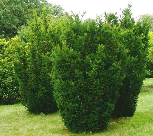 Тис Hillii (Хилли). Очень плотный компактный кустарник, очень хорошо ветвится у основания. К 10-ти годам высота 150 см, диаметр 100 см. Побеги жёсткие приподнятые, хвоя блестящая зелёная. Почва суглинистая дренированная, некислая. Может расти в тени под деревьями. Ценное растение для живой изгороди, хорошо стрижётся. Морозостойкость до -23ºС.