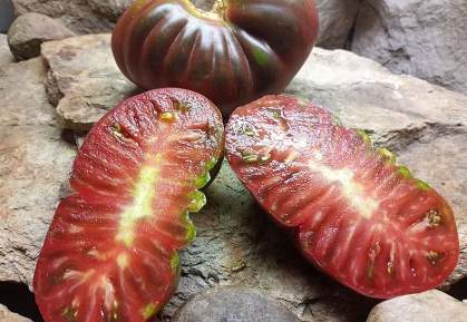 Томат Брендивайн Черный. Супер томат, невероятно сладкий, ароматный и сочный. В теплице вырастает до 160 см. Из черноплодных один из самых ранних. Помидоры плоско-круглой формы с ребристыми зелеными плечиками, которые при полном созревании плода почти полностью темнеют. Масса 200-350 и более грамм. Супер-сладкий. Для любого вида томатной переработки.