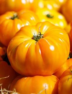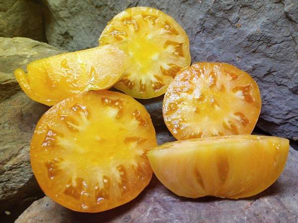 Томат Брендивайн Желтый. Очень популярный старинный сорт томата. Выведен ещё до 1885 года в США. Сорт среднеспелый. Лист картофельного типа. Плод плоскоокруглый, крупный, среднеребристый, средней плотности. Окраска незрелого плода зелёная с зелёным пятном у основания, зрелого — жёлто-оранжевая. Число гнезд — 6 и более. Вкус отличный. Устойчив к вирусу табачной мозаики.
