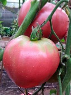 Томат Бычий Мед. Получен в результате скрещивания сортов Бычье сердце и Розовый мед. Индетерминантный, высокорослый (1,8-2 м), среднеранний урожайный сорт. Для выращивания в теплицах, в южных районах и в ОГ. Формировать лучше в 1-2 стебля. Плоды сердцевидные, розового цвета, 200-400 г. Мякоть нежная, сочная, сладкая, очень вкусная. Идеальны для свежего потребления, для различных кулинарных заготовок, приготовления соков, густых паст, кетчупов, соусов. Сорт устойчив к основным болезням томатов. Всегда высокий урожай.