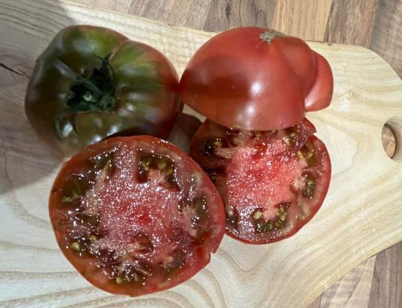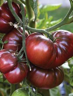Томат Чёрный из Тулы. Индетерминантный среднеспелый сорт, подходит для выращивания и в открытом грунте, и в теплице, супер урожайный, не капризный в уходе. Плоды плоскоокруглые, насыщенного темно-красного цвета иногда с коричневыми плечиками, массой 250-450 г.