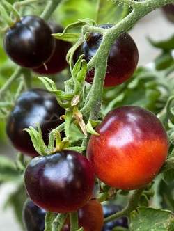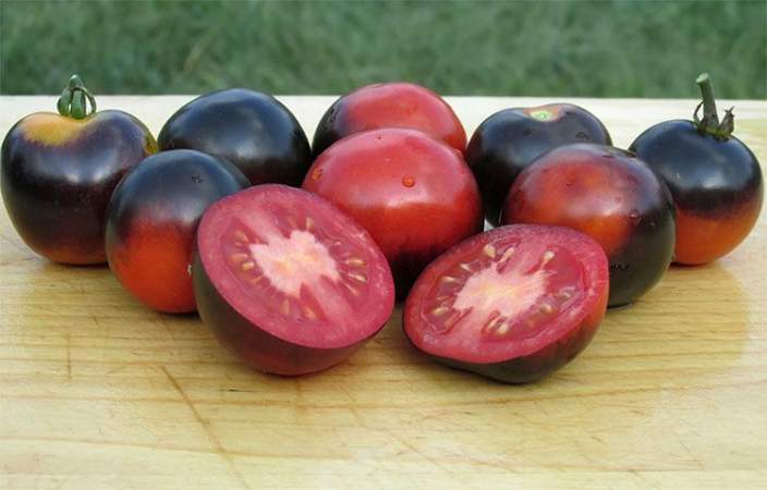Томат Индиго Роз. Первый сорт томата с фиолетовой окраской плодов полученный в университете Орегона, США профессором кафедры садоводства Джимом Маерсом при скрещивании культурных томатов с дикими видами из Чили и Галапагосских островов.