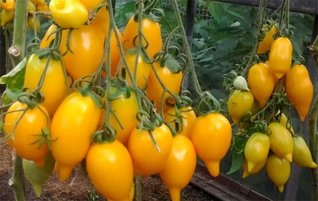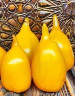 Томат Сокровище. Сорт раннеспелый, урожайный. Плоды очень красивые, ярко-жёлтые, продолговатые, похожи на лимоны с длинным носиком. Мякоть плотная, хрустящая, сочная, сладкая. Вкусовые качества отличные. Идеален для цельноплодного консервирования. Сорт устойчив к неблагоприятным условиям выращивания. Длительного периода плодоношения до самых заморозков.
