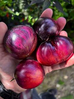 Томат Убеждение. Среднеспелый индетерминантный сорт высотой до 1,5 м в теплице. Куст выращивают в 1-2 стебля. Плоды плоскоокруглые, красивые, розовые с золотистыми полосками с антоцианом на пышных плечиках, весом 100-350 грамм. Мякоть умеренно плотная, сочная, розового цвета. Очень сочный и ароматный сорт, томаты вкусные в консервированном виде! Отличная завязываемость в неблагоприятное дождливое лето. Урожайность средняя. Отзывчив на подкормки. Селекция Бреда Гейтца, США.
