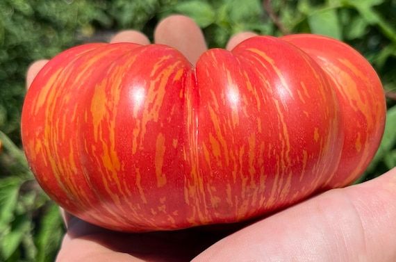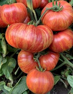 Томат Винтажное Вино. Семена Томат Винтаж вайн. Рекомендуется для выращивания в защищенном и открытом грунте. Среднеспелый — от всходов до начала сбора первых плодов 110-120 дней. Детерминантный, в открытом грунте высотой до 1 м, в теплице 1,5-1,6 м. Зрелые алые плоды, массой 150-250 г, украшены золотистыми штрихами. Мякоть плотная и мясистая. Вкус замечательный. Отлично подходит для употребления в свежем виде. Урожайность в теплице 10-12 кг/м².