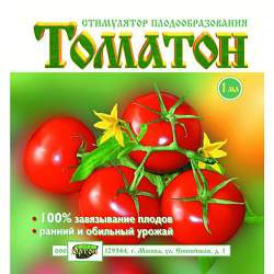Томатон (1 мл). Стимулятор плодообразования для томатов открытого и защищенного грунта. Стимулирует завязи плодов у томатов и предотвращает опадение завязей, укоряет рост и созревание плодов, что позволяет увеличить ранние сборы на 50 — 100 %, а общий урожай — на 25 — 50 %.
