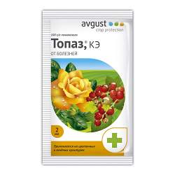 Топаз, 2 мл. Препарат "Топаз" является действенным средством для лечения и профилактики здоровья растений, необходим для защиты от ржавчины и мучнистой росы. Основное действующее вещество данного препарата — пенконазол.