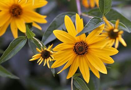 Топинамбур (Подсолнечник клубненосный). Растение называют земляной грушей, иерусалимским артишоком. Также бытует название "бараболь". На подземных побегах (столонах) образует съедобные клубни, по вкусу похожие на сладковатую капустную кочерыжку или репу.