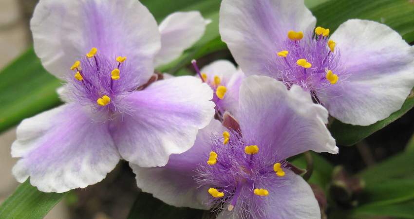Традесканция Bilberry Ice (Билберри Айс). Многолетнее травянистое растение. Растение с прямостоячими, ветвистыми, угловатыми стеблями, облиственными по всей длине. Листья линейно-ланцетные, фиолетово-зеленые. Цветки лавандовые с белым краем.