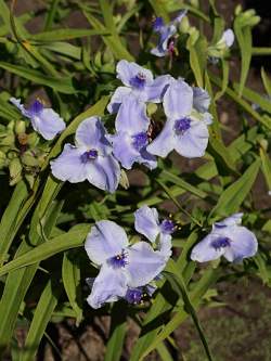 Традесканция Euridice (Эвридика). Многолетние травянистое растение с прямыми или ползучими облиственными стеблями. Листья саблевидные, около 20 см длиной. Венчик с тремя лепестками; появляются в начале лета и не исчезают до осени. Каждый цветок раскрывается всего на один день, но гроздья бутонов в каждом соцветии гарантируют длительное, непрерывное цветение. Предпочитают слегка притененные, защищенные от ветра места. Лучше растет на увлажненных, богатыми гумусом участках почвы.